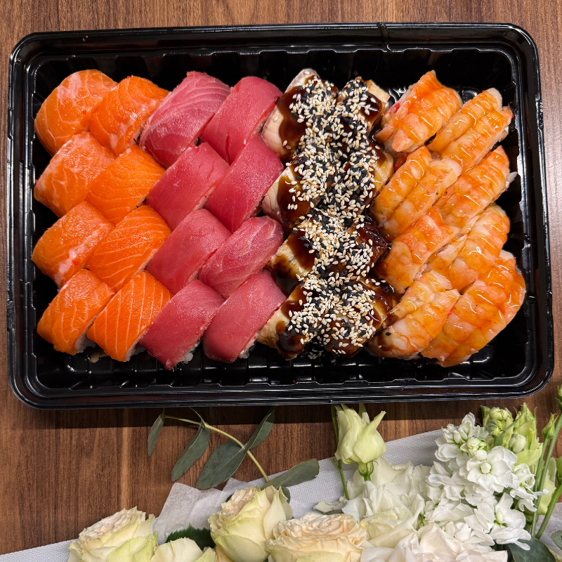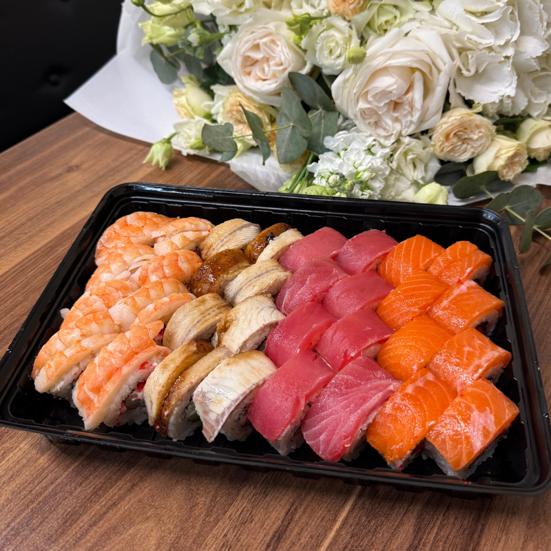 📝 Преміальний сет Deluxe Філадельфія, що поєднує чотири благородні смаки з ніжною вершковою текстурою. Лосось дарує м’яку маслянисту ніжність, тунець додає витончений рибний акцент, тигрова креветка привносить делікатну солодкувату нотку, а вугор підкреслює смак насиченим соусом унагі. Гармонійне поєднання преміальної риби та крем-сиру створює елегантний і збалансований смак у кожному шматочку ✨