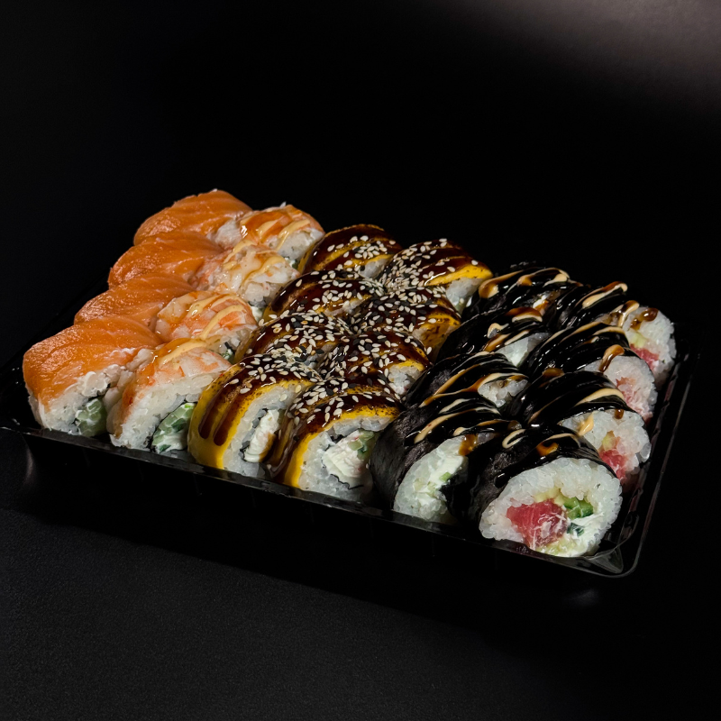 📝Гармонійний сет, у якому ніжна класика поєднується з насиченими смаковими акцентами. Філадельфії з лососем і креветкою дарують м’яку вершкову текстуру та делікатний смак, Філадельфія Чеддер зі сніжним крабом і кунжутом додає приємні сирні та легкі горіхові нотки, а футомакі з тунцем підкреслює виразний рибний акцент. Вдалий вибір для збалансованого та смачного задоволення✨